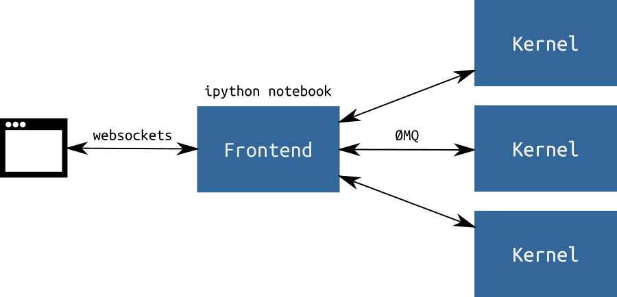 Notebook v tomto případě představuje jeden ze tří standardních frontendů – vedle textového rozhraní a grafické Qt konzole. Frontend je striktně oddělený od výpočetního jádra, které od něj přijímá zprávy a vrací výsledky.