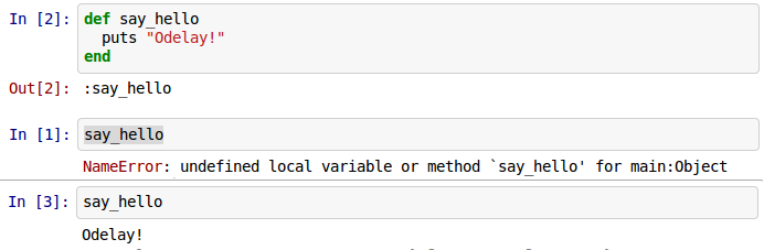 Velký problém mohou být i chyby v jádru jazyka. IRuby funguje tak, že nahrazuje některé standardní třídy (včetně třídy Kernel) vlastní implementací, která posílá výstupy zpět do notebooku. Občas se pak může stát, že v jádru zkrátka není implementovaná nějaká metoda, kterou nějaký gem používá. V takovém případě to chce klid a hlásit chyby.